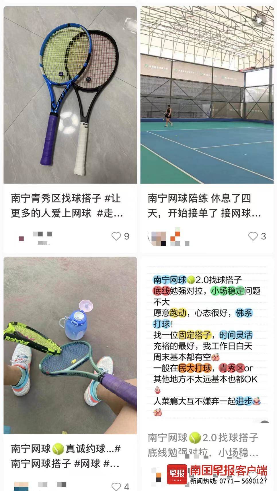 ▲某社交平台上,有不少南宁市民寻求“网球搭子”。截图