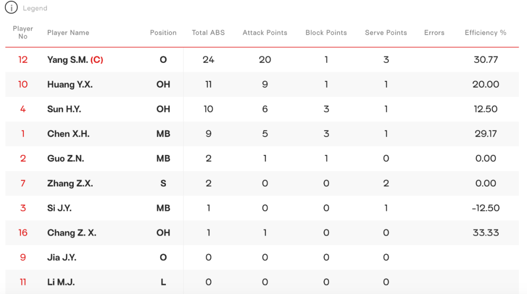 赛后技术统计显示,杨舒茗以24分荣膺本场比赛得分王,黄悦鑫得到11分,孙虹云10分,陈晓辉9分,郭中楠2分。
