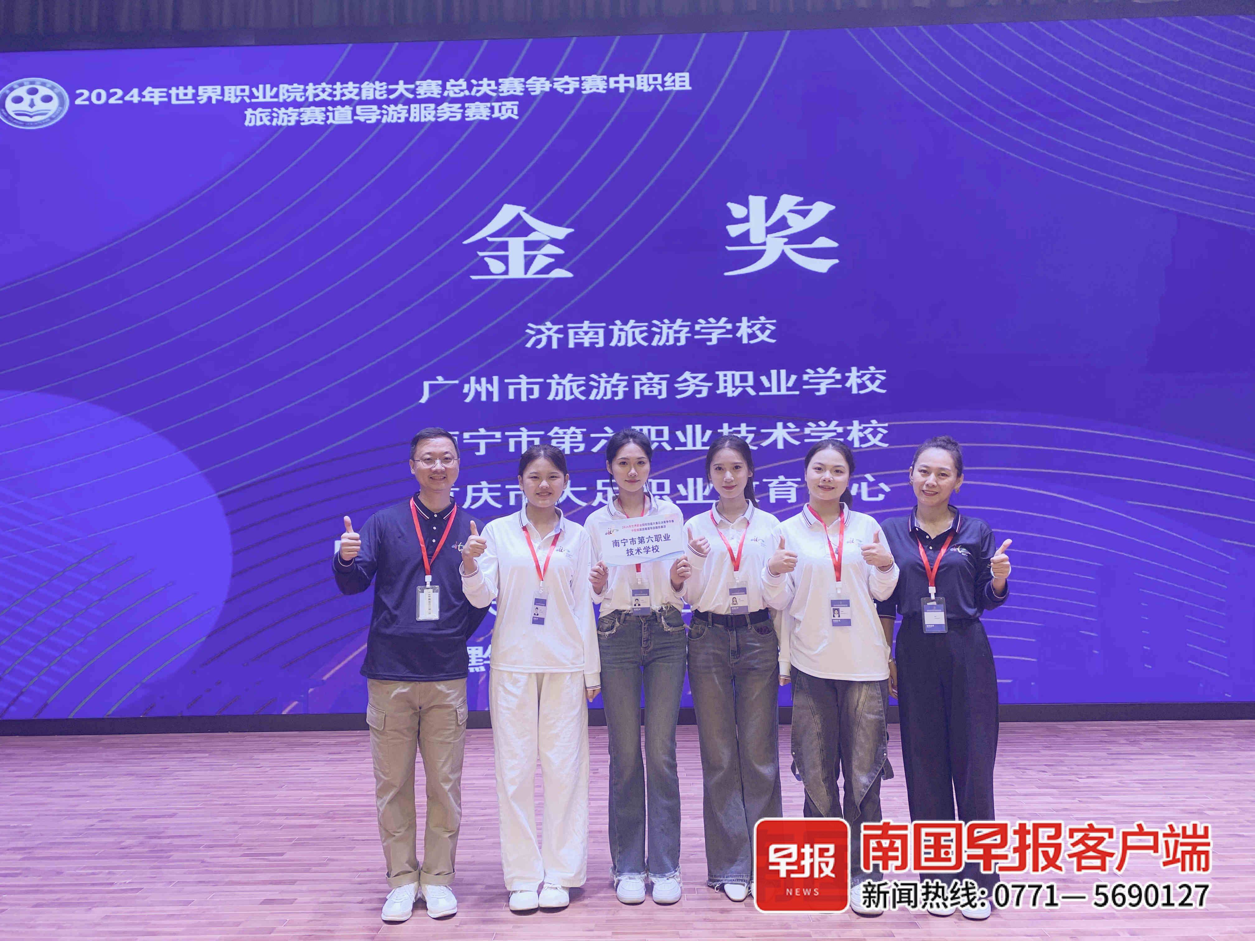 10月27日,在济南举行的世界职业院校技能大赛总决赛争夺赛(中职组)旅游赛道导游服务赛项比赛落下帷幕。南宁市第六职业技术学校的参赛选手,以总分第三名的优异成绩斩获金奖,实现了南宁市中职导游服务赛项全国比赛的历史性突破。