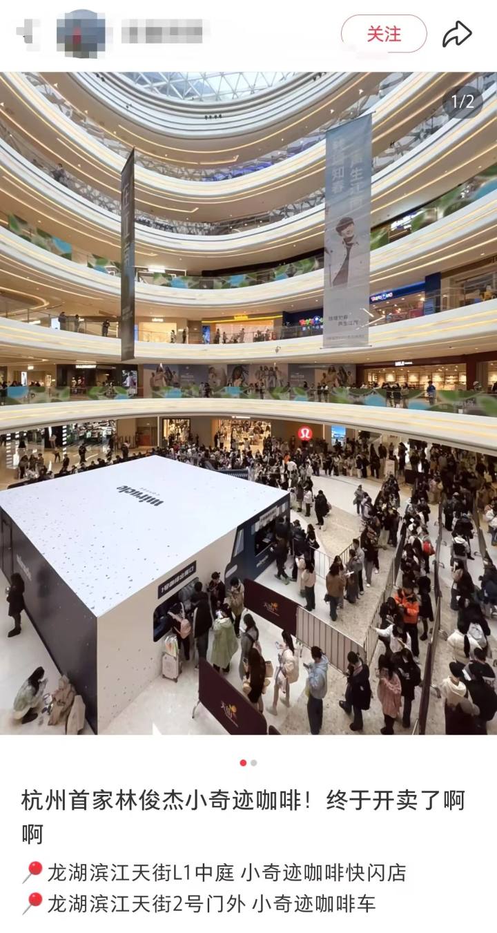 虽然是杭州首店开业,但这并不是林俊杰的咖啡馆第一次来杭州。今年3月中旬,林俊杰来杭州大莲花开演唱会时,同步在杭州滨江天街开启了Miracle Coffee咖啡馆的快闪店,当时排队情况同样很热烈,人多到排到商场外绕圈,门店物料也是一度售空。