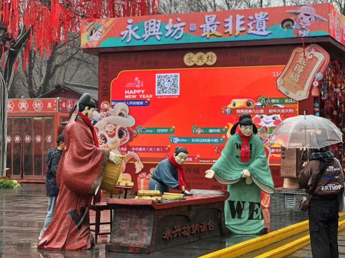 每到逢年过节,永兴坊总有各种热闹活动,将非遗文化与民俗体验带给游客。皮影、剪纸吸引着路人驻足,娓娓道来的文化历史和制作工艺,围观的小朋友们目不转睛地看着,不时发出惊叹声。不少参与互动的游客都说,剪纸等虽是第一次尝试,有点难,但非常有趣,“这种体验比单纯的购物更有意义。”