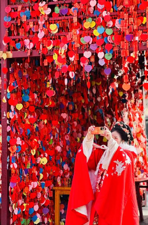 夜幕降临,永兴坊的灯光逐渐亮起,整个街区变得更加迷人。游客们纷纷拿出手机拍照,记录下这美丽的夜景,还有情侣在许愿树下合影。