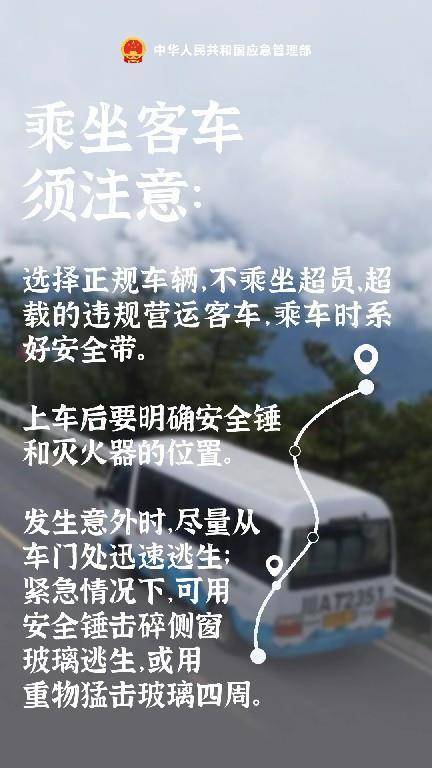 出行注意:在乘坐客车时,严禁携带易燃易爆物品,严禁吸烟。