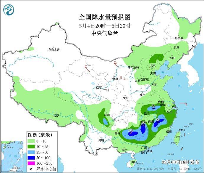 随着暖湿气流再次加强,南岭-武夷山沿线将遭遇今年以来最猛烈而持久的一波暴雨袭击。尤其是假期最后一天5月5日,暴雨区域从贵州一直绵延到福建,连长江中下游沿线也有中到大雨。
