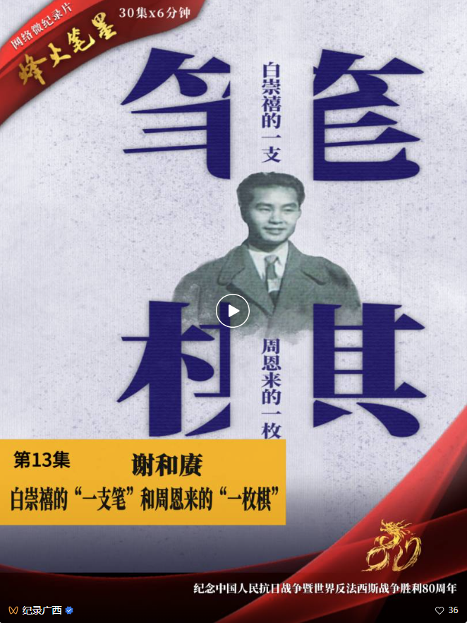 八路军(驻)桂林办事处,常常收到来自谢秘书的情报。谢和赓是白崇禧委以重任的“笔杆子”,他的真实身份,却是周恩来在桂系集团布局多年的“闲棋冷子。