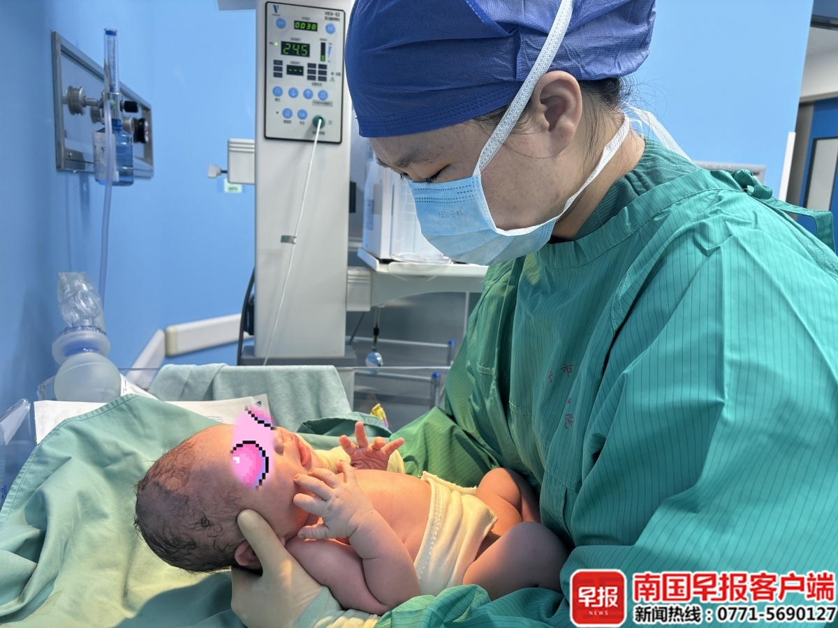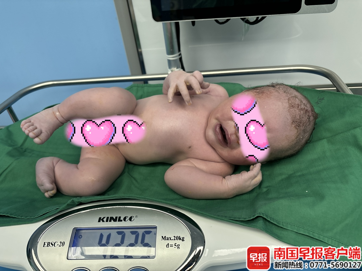 在南宁市妇幼保健院,10月1日0点24分,医院迎来首个国庆宝宝。二胎妈妈罗女士,因为巨大儿入院择期手术,孩子顺利出生,是一个男孩,体重为4220g,评分10分,家长为孩子取小名“国庆”。