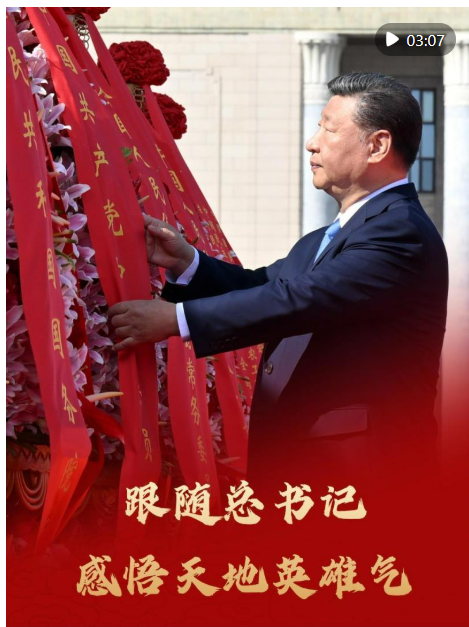9月30日上午,习近平总书记等党和国家领导人同各界代表一起,在天安门广场向人民英雄敬献花篮。每逢烈士纪念日,总书记都向人民英雄敬献花篮,风雨无阻,行为世范。