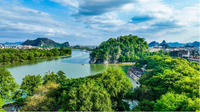 桂林七星(岩)景区位于桂林市中心漓江东岸,因七座山峰的分列恰如苍穹高悬的北斗七星而得名,是桂林文化山水的坐标、世界旅游组织推荐景区、国家重点名胜风景区、中国首批4A级景区,更被称为华南区最大的综合性森林公园。