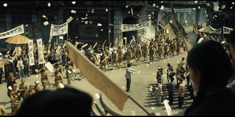 ▲电视剧《阵地》剧照广西学生军集结上前线