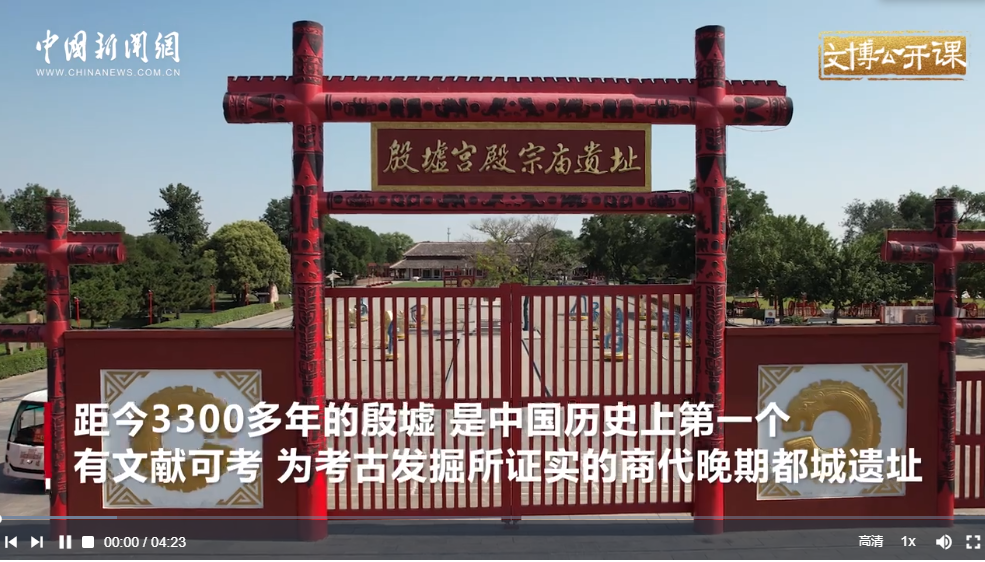 【字幕】殷墟博物馆是我国首个全景式展示商文明的国家重大专题博物馆。