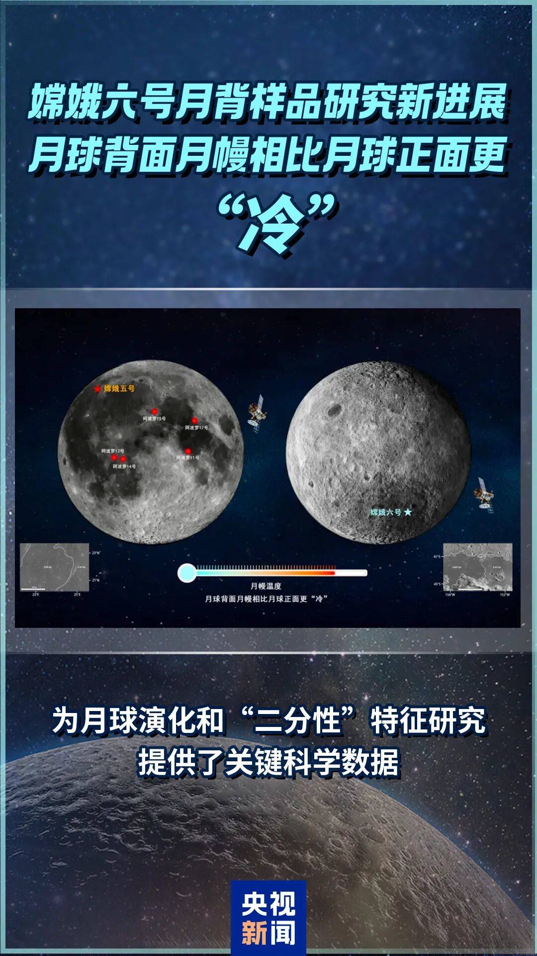 10月6日,国家航天局和国家原子能机构联合发布嫦娥六号月球背面样品研究最新成果。中国科学家首次基于嫦娥六号月球背面样品研究发现,月球背面月幔相比月球正面更“冷”。(点击查看详情)
