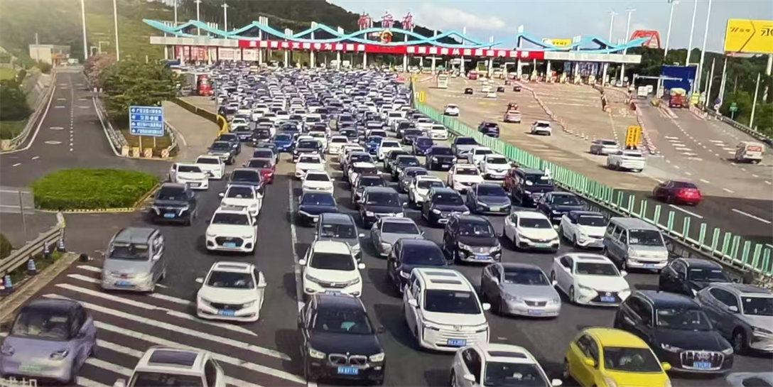 ▲10月7日下午,南宁东收费站回程车流量大。交管部门供图