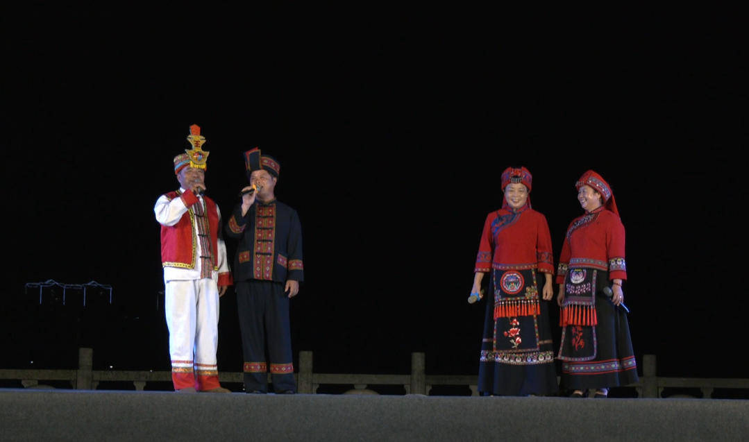 当晚,皓月当空,仫佬族古歌悠扬而起。多名仫佬族歌王与民间艺人轮番登台,用原生态的演唱将观众带入山野田间的古老情境,感受先民在劳动、爱情与祈福中的真挚情感,使这“沉睡”于乡野的非遗瑰宝在现代舞台上焕发出新的生命力。歌王同台演绎。本文均由景区供图。
