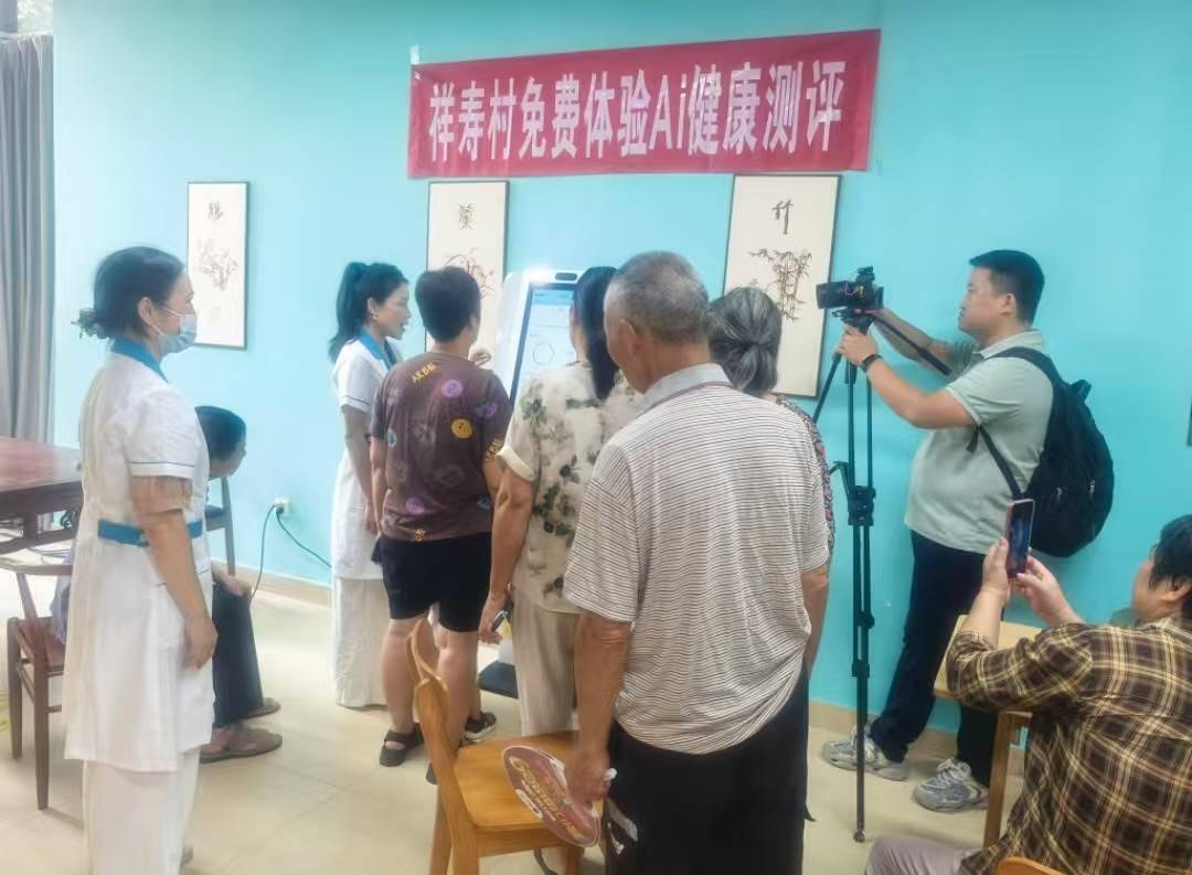 除了常规医疗义诊服务外,本次活动还首次引入了祥寿村(广西南宁)健康管理公司自主研发的AI中医诊疗设备,为居民提供全天候中医诊疗服务。这台AI四诊仪是检测一体机,它是通过人体的面诊、舌诊、脉诊等,一分钟就能生成一份详细的体检报告。并会根据体验者的体质及身体健康情况,马上给出一个正确调理的意见建议。