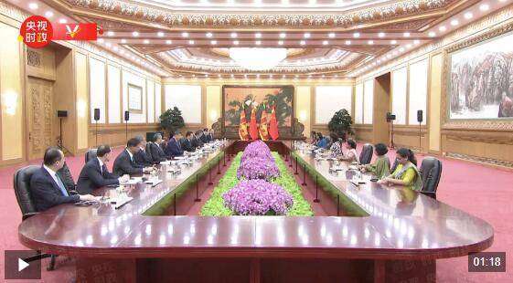 10月14日上午,国家主席习近平在北京人民大会堂会见来华出席全球妇女峰会的斯里兰卡总理阿马拉苏里亚。
