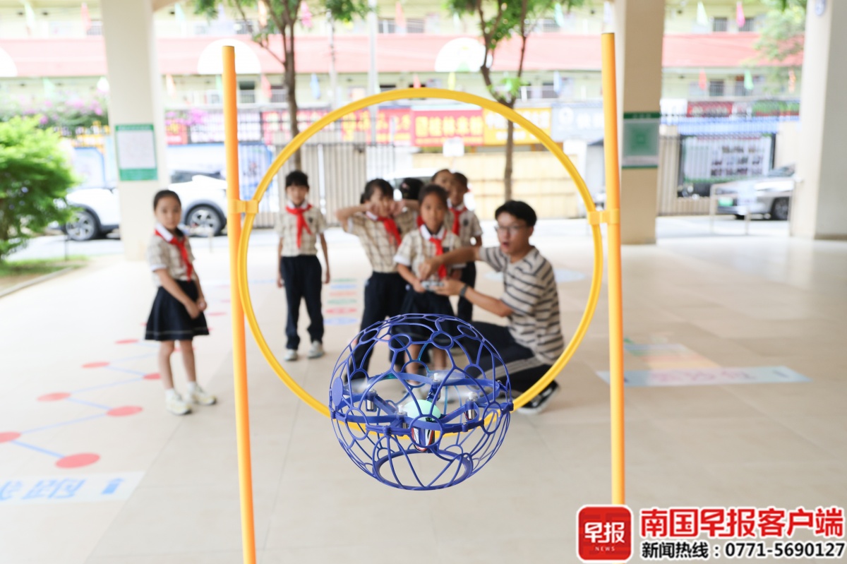 遥控台球车创新融合传统台球与遥控车竞技,学生可在定制球桌上操控车辆击球入洞,体验科技与体育的巧妙结合。学生在教练指导下轻松穿越障碍,将无人机足球穿越篮筐。此外,利用丁烷气泡燃烧原理、视觉效果震撼又安全的“火焰掌”实验,生动展现了“体育+科技”融合的广阔前景,拓宽了学生对现代体育形态的认知。