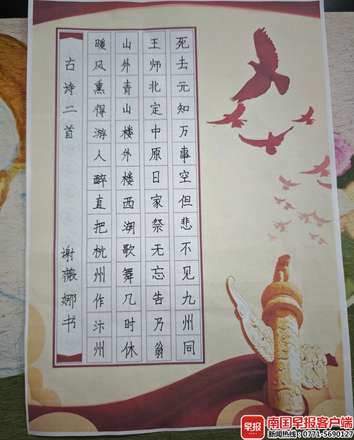 好在功夫不负有心人,她的字迹从最初的歪歪扭扭,到后来的清秀工整,再到获得“小小书法家”“规范汉字书写比赛二等奖”这样的学校荣誉。但薇娜并不满足,她说:“很多人写得比我好,我还可以写得更好。”