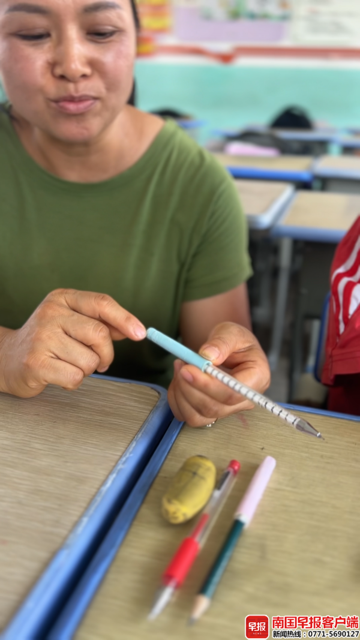 很多读者对视频中薇娜用嘴衔笔写字的画面,印象深刻。张女士介绍,这支笔已经陪伴了薇娜5年,它大小合适,笔帽密封性也好,不会被牙齿咬爆墨。5年来,笔芯更替无数,橡胶包裹的笔身却始终未换,笔身被咬得“起毛”了,张女士就用刀刮平。