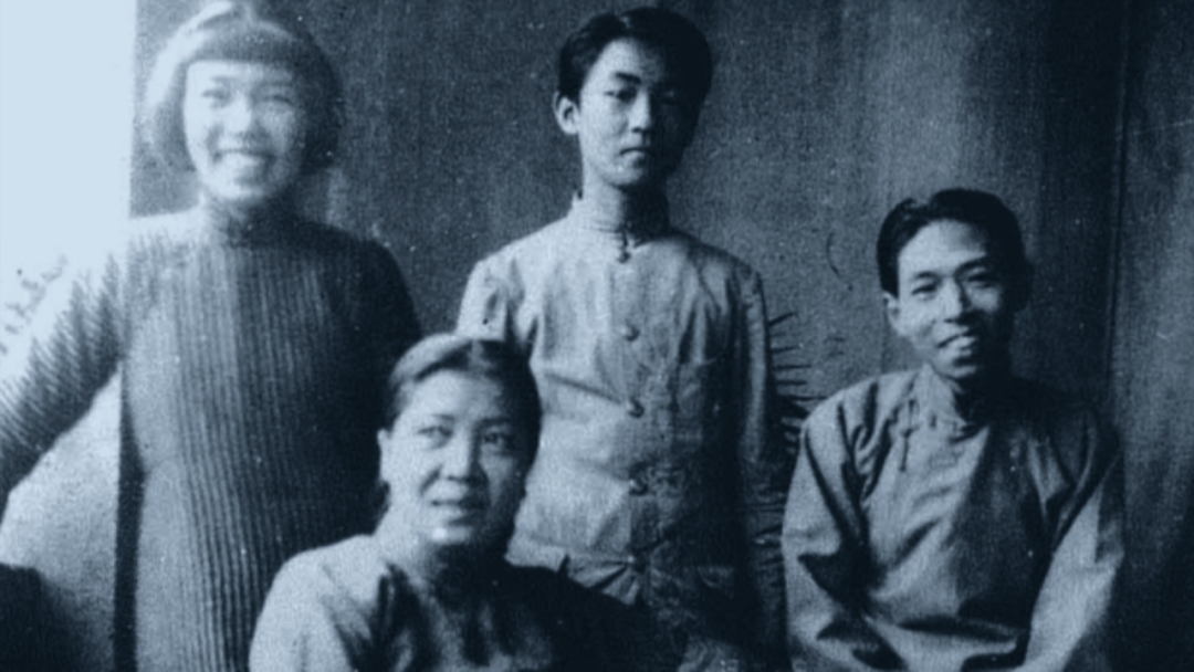 茅盾(右一) 沈霞(左一) 沈霜(右二)