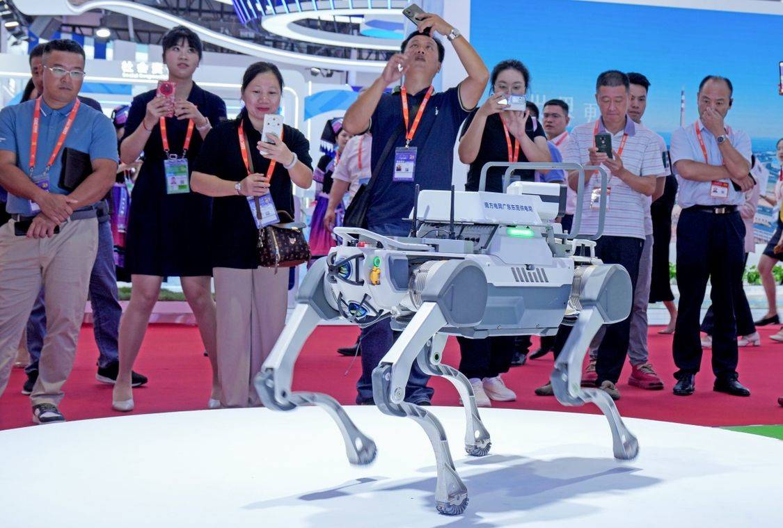 第22届东博会上,南方电网公司基于人工智能自主研发的全地形巡检与操作智慧狗“吠云”吸引众多观众目光。马华斌 摄