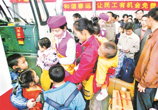 2007年2月,临近春节,许多农民工却在发愁:回家的车票在哪里?为了减轻农民工负担,营造祥和春运氛围,2007年2月11—15日,南国早报与汽车运输公司联合举办“和谐春运,让农民工有机会免费坐车回家”活动,让在南宁务工的农民工免费坐车回家。