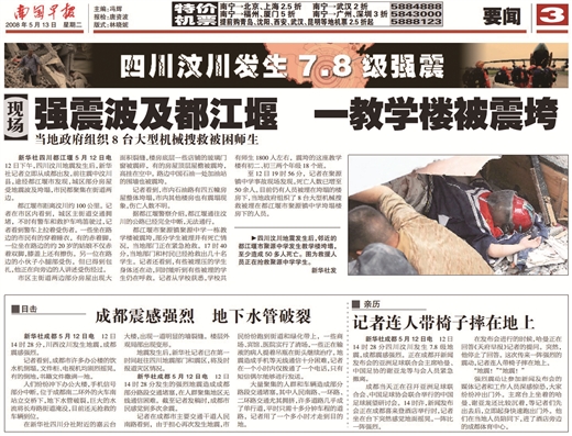 2008年5月12日14时28分,四川汶川发生里氏8.0级特大地震。位于广西的南国早报办公室内,电话铃声、键盘敲击声与急促的脚步声交织在一起,一场与时间赛跑的新闻战役就此打响。多名记者听闻灾情后,以最快速度收拾采访设备和应急药品,主动请缨奔赴受灾一线。