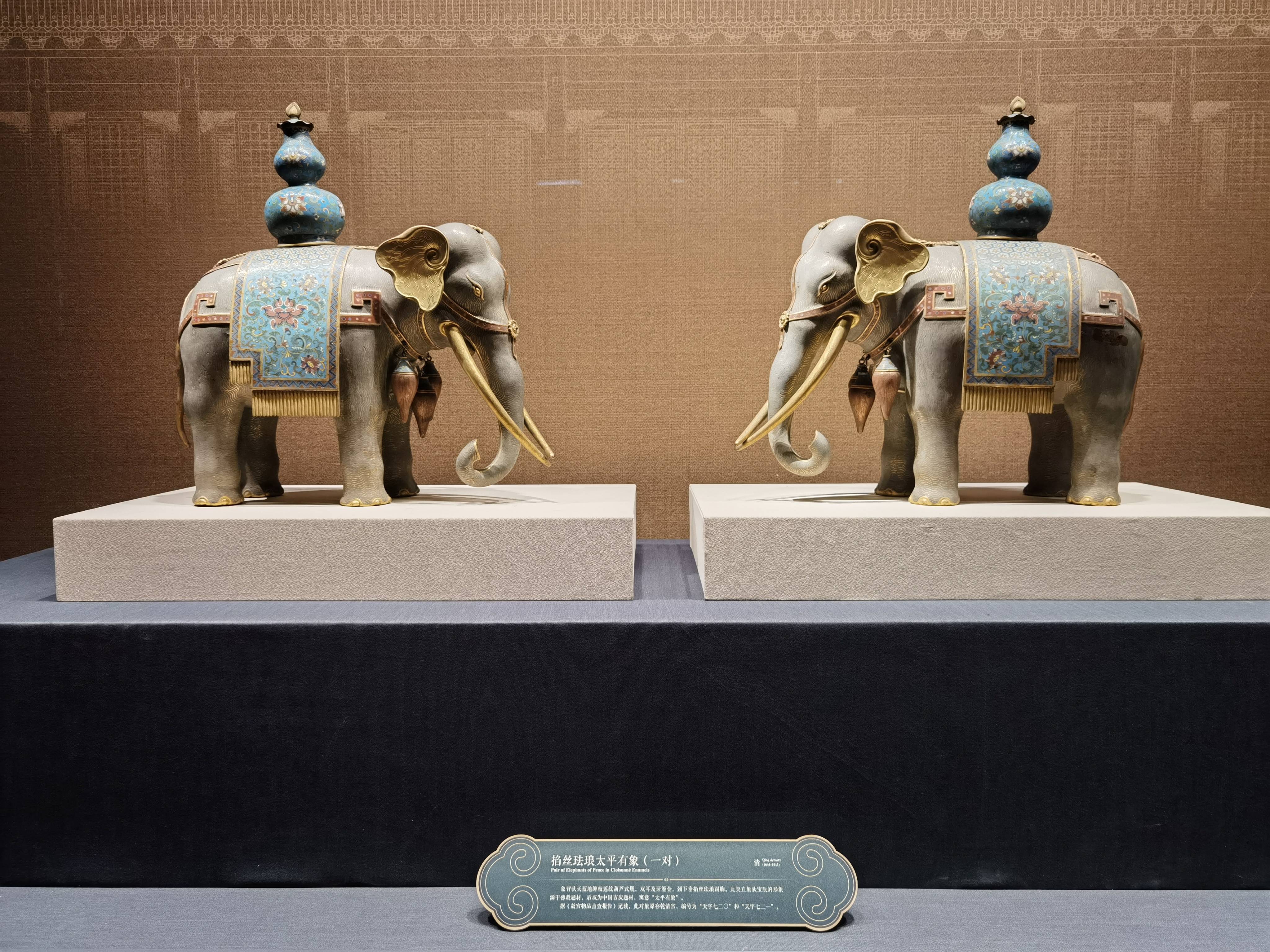 △故宫展出的掐丝珐琅太平有象。(总台央视记者程爱华拍摄)