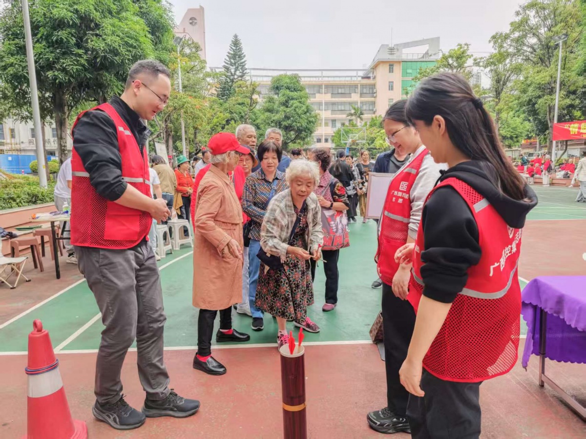 据悉,当天的活动集政策宣传、公益服务、趣味游园、美食分享与文艺表演于一体。在趣味游园区,老人们兴高采烈地玩投“箭”;在健康义诊区,义诊人员为老人开展测量血压等基础健康检查;在文艺表演区,辖区学校学生与社区居民同台献艺,共同呈现了一场丰富多彩的文艺表演。