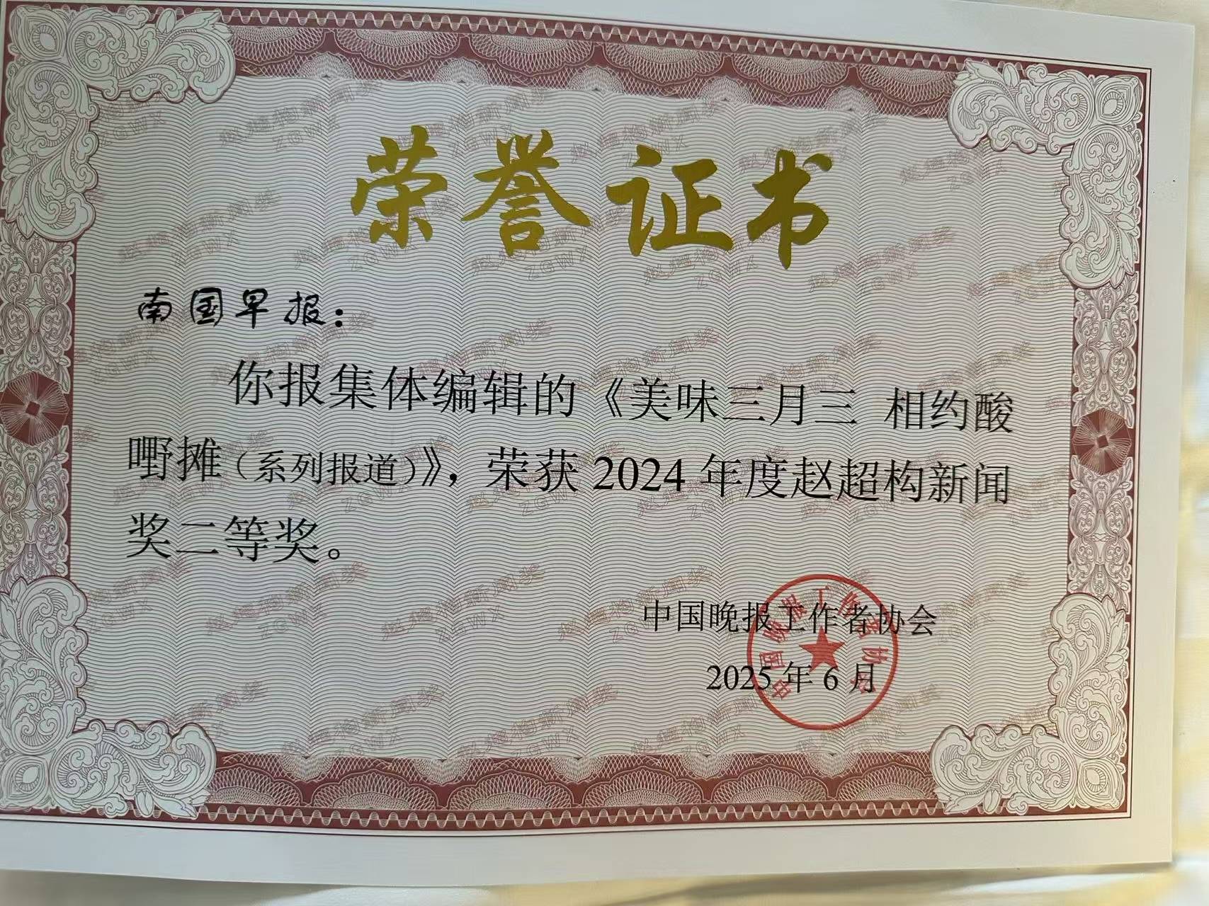 大会审议了中国晚协工作报告,报告对中国晚协第39届年会以来开展的主要工作进行了总结,并谋划明年中国晚协的工作重点。大会对部分为晚报事业作出杰出贡献的原任、现任总编辑给予了高度评价,致以崇高敬意。大会宣布了2024年度赵超构新闻奖名单,并为获奖单位和个人颁奖。南国早报《美味三月三 相约酸嘢摊(系列报道)》等三件作品荣获赵超构新闻奖二等奖,《那人那船那渡口》等三件作品获得赵超构新闻奖三等奖。