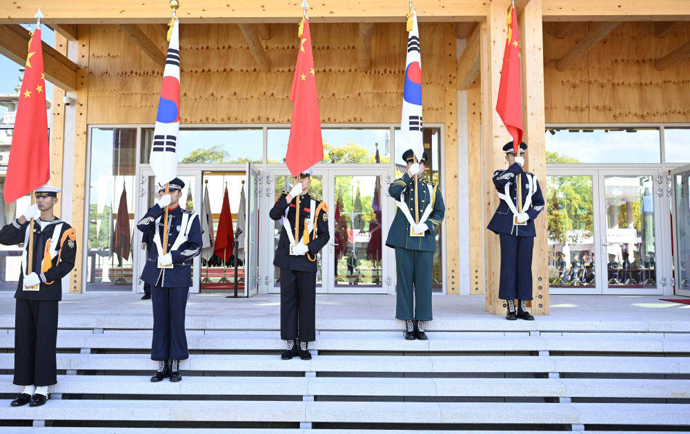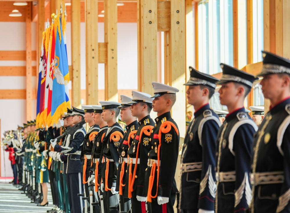 当地时间11月1日下午,国家主席习近平出席韩国总统李在明举行的欢迎仪式。