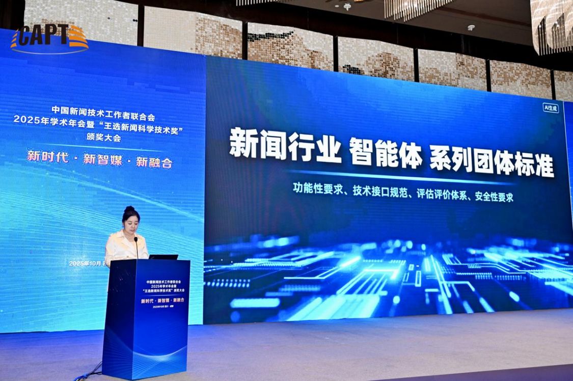 大会还举行了2025年度中国新闻技术工作者联合会“新闻行业 智能体”系列团体标准发布活动。中国新闻技术工作者联合会新闻信息标准化委员会秘书长路海燕指出,该标准明确了新闻行业智能体的功能性要求、技术接口规范、评估评价体系以及安全性要求,旨在提升新闻内容生产能力,促进技术进步与业务模式创新,规范智能体的使用,提升其效果和安全性。