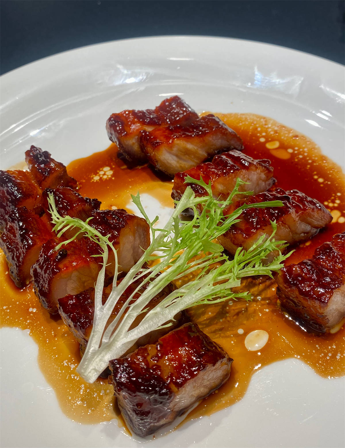 黑金叉烧更是颜值与口感双在线,色泽金黄油亮,肥瘦比例恰到好处。每一块都保持均匀厚度,入口即有油脂的醇香与蜜糖的甜润交织,肉香浓郁,层次丰富。