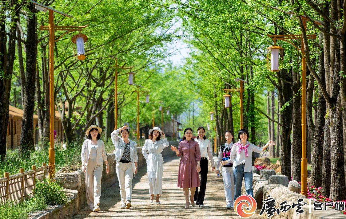 游客漫步在南丹矿区生态修复项目笼箱盖景区的林荫小道。图源:南丹县委宣传部