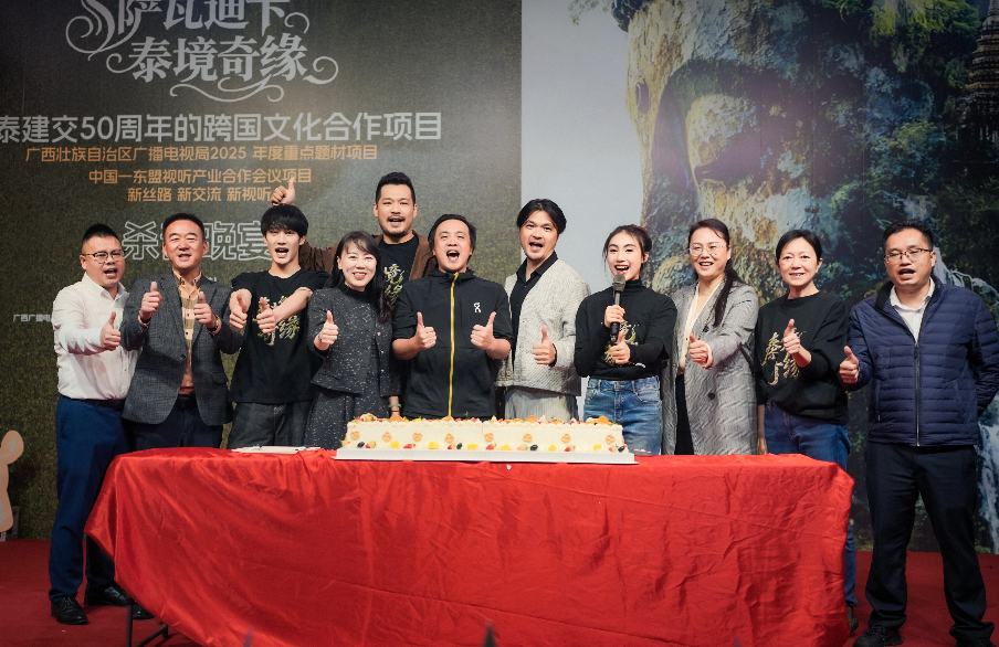 11月3日,由自治区广播电视局指导的微短剧《萨瓦迪卡—泰境奇缘》杀青仪式在北投明月荟顺利举行。主创团队、中泰影视界代表及嘉宾齐聚一堂,共同见证这一聚焦中泰文化交流与科技融合的影视项目顺利收官。广西广播电视台对外传播中心主任劳海蒙,北投环境集团党委副书记、职工董事、分工会主席覃柳娜,广西广播电视台交通台总监秦娜、对外传播中心副主任苏宇、交通台副总监黄莉华出席杀青仪式。