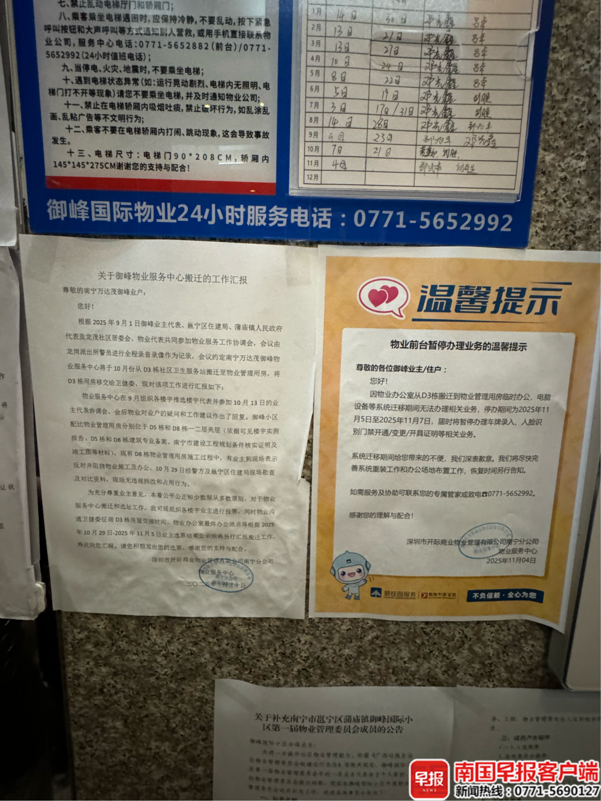 近日,南宁万达茂御峰国际D区物管方原办公场地需搬迁,其选址问题引发业主争议。D8栋有业主认为,D8栋并未规划为物业管理用房,物管方未经业主同意,擅自将该楼栋架空层改造为物业管理用房(下称物业用房)。11月6日,南宁市邕宁区住建局就此回应称,未发现存在违法行为。