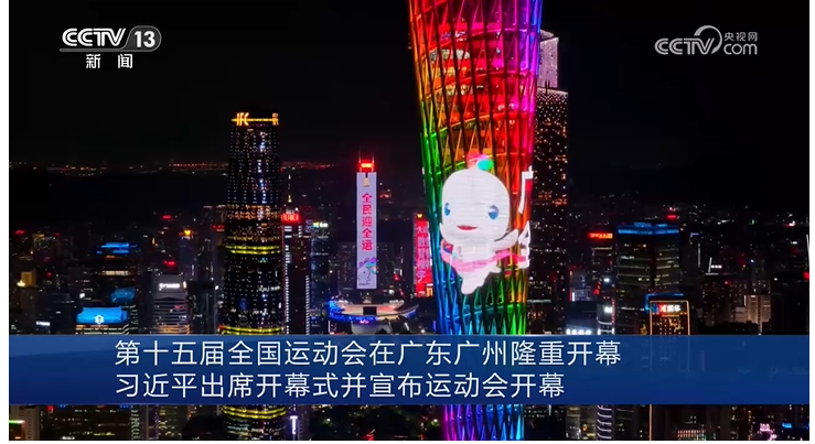 11月9日晚,中共中央总书记、国家主席、中央军委主席习近平在广东省广州市出席中华人民共和国第十五届运动会开幕式并宣布运动会开幕。