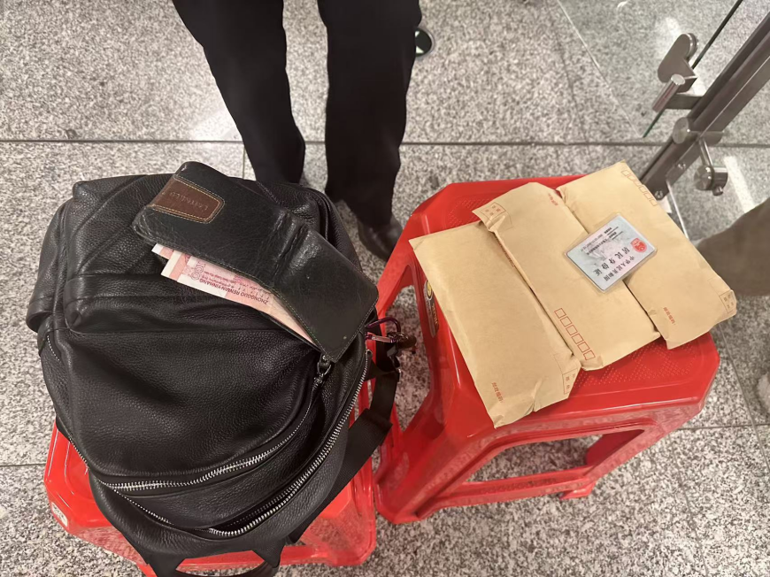 乘客不慎遗忘的背包内有现金。