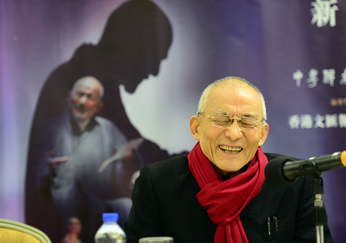 2016年1月11日,著名表演艺术家游本昌先生在《弘一大师·最后的胜利》新闻发布会上讲话。新华社记者 秦晴 摄