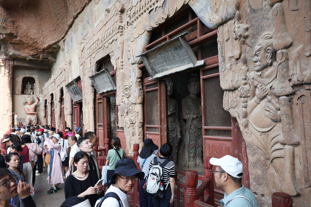 2024年11月2日,麦积山石窟艺术研究所保护研究室的文物修复师何举在麦积山石窟133窟内修复塑像。近年来,麦积山石窟艺术研究所等文物保护部门持续加大对麦积山石窟的抢救性保护和预防性保护工作力度,积极探索现代科学技术手段与传统文物修复技艺相结合的保护修复新路径。截至目前,麦积山石窟已有80个洞窟完成整体保护修复工作。