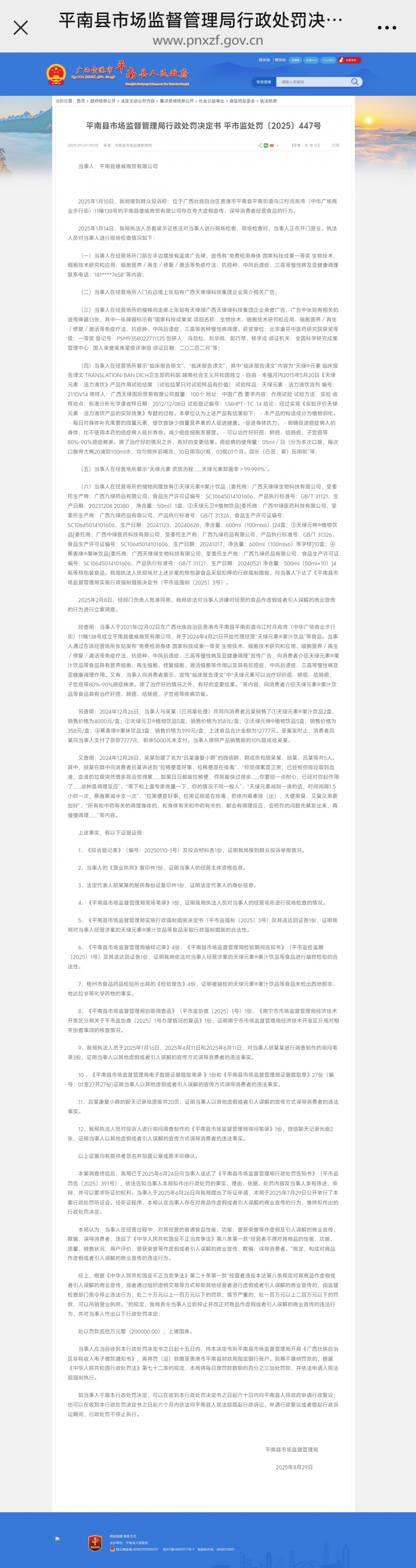 2月8日,平南县市场监督管理局依法对平南县雄威商贸有限公司涉嫌对经营的食品作虚假或者引人误解的商业宣传的行为进行立案调查。