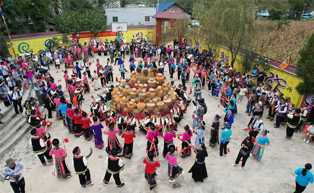 德峨镇“阿搞营地”重现火把节盛景,者保乡将旧粮站改造为农耕文化空间——这些“微改造”不仅美化乡村,更创造岗位、带动农户年均增收。一位返乡青年感慨:“借助研学与露营人流,我实现了创业梦,也帮乡亲卖出更多土特产。”▲仡佬族庆丰收。