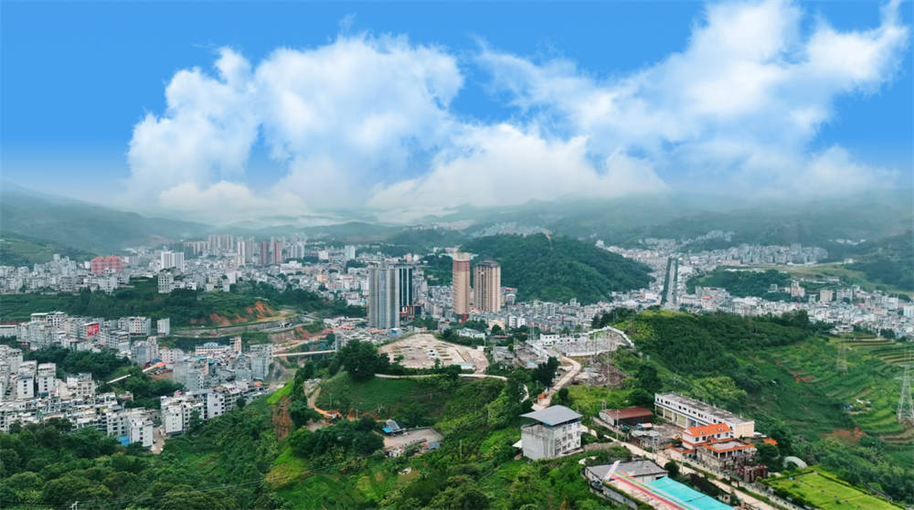山水与民族风情交织,美食与人文记忆相融。这里是广西隆林各族自治县,被誉为“活的少数民族博物馆”,一座没有围墙的文化殿堂,一处藏于滇、桂、黔三省区交界的世外桃源。▲蓝天下的隆林县城新貌。 均为隆林各族自治县党委宣传部供图