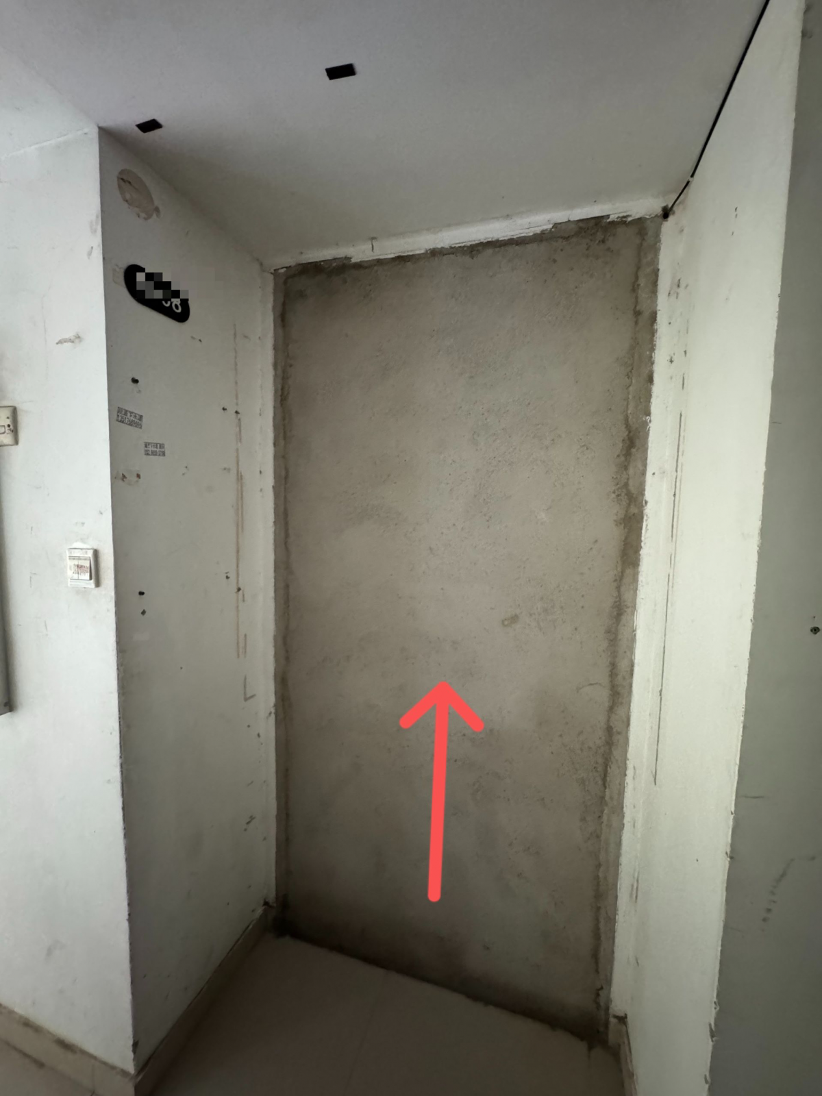涉事房屋靠近空中花园公共区域外墙一侧已凿开一扇入户门。