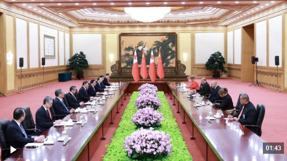 习近平指出,两国友好源远流长。建交以来,双方始终相互尊重、平等相待,坚定支持彼此核心利益和重大关切,务实合作成果丰硕,全面战略伙伴关系不断深化,树立了不同社会制度、不同大小国家友好合作的典范。