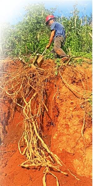 ▲北流市广健种植专业合作社的农户正在挖牛大力。