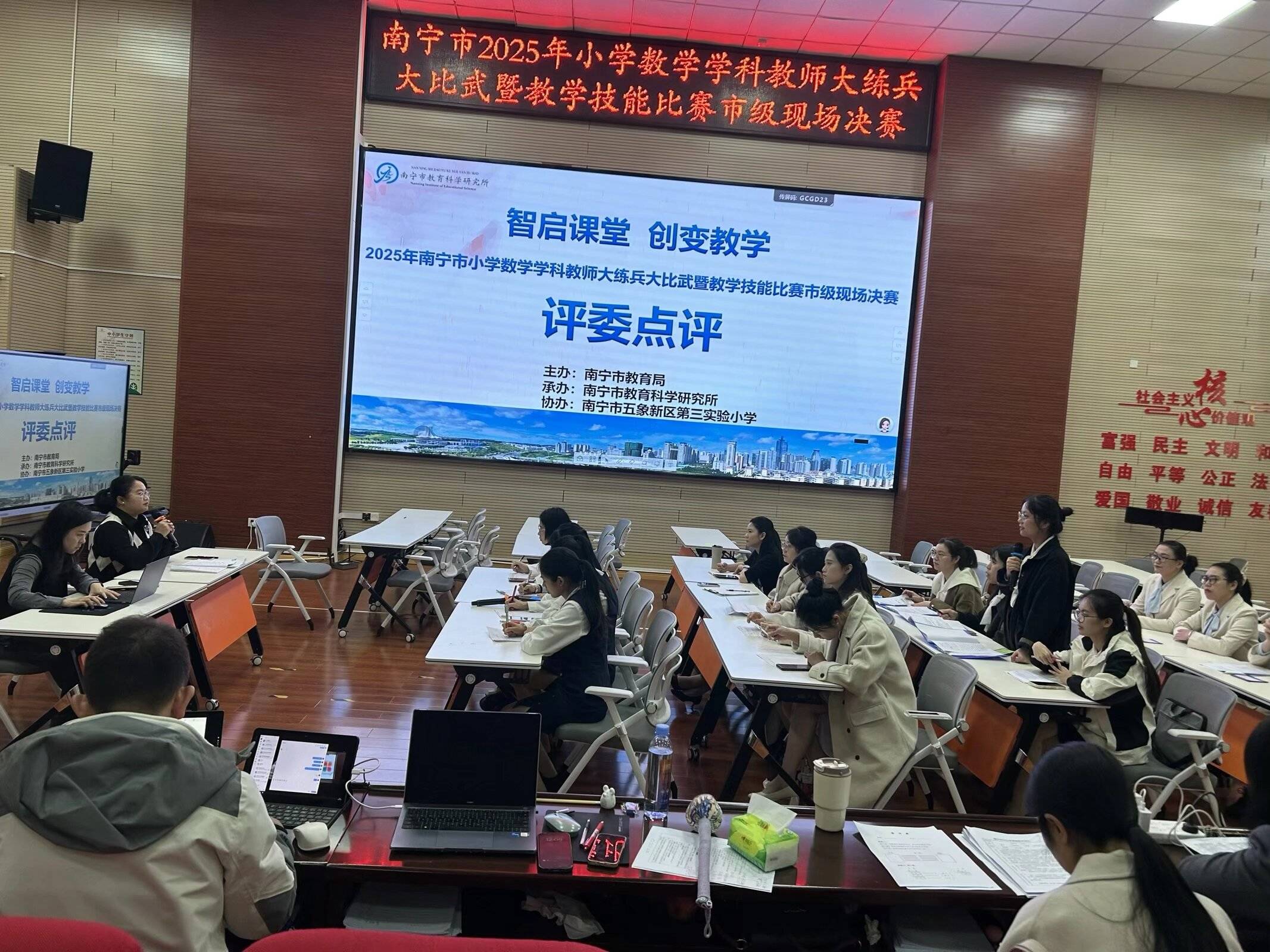2025年南宁市小学数学“大练兵大比武”暨教师技能比赛决赛于11月24日至28日成功举行。本次活动由南宁市教育局主办,南宁市五象新区第三实验小学协办,旨在深化课堂教学改革,提升教师专业素养与教学能力。