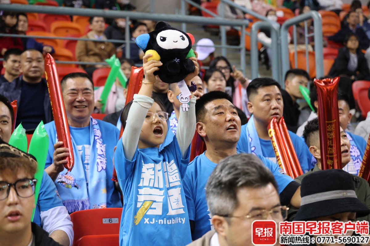 新疆队小球迷在场外加油。