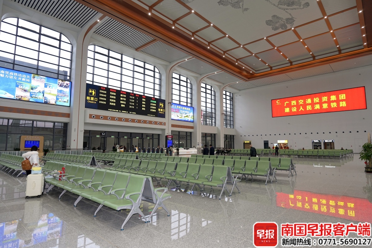 国铁南宁局凭祥东站副站长苏时雄介绍,该站距离市区约10分钟车程,站房总设计面积达8000平方米,可同时满足约1100名旅客的候车需求,是南凭高铁崇凭段全线规模最大的新建车站,远期预留6000平方米海关、边检等国际站用房。线路开通运营初期,每日开行动车组列车4对,可以通达柳州、桂林、北海、钦州等地,凭祥距离南宁最快75分钟可达,后续将根据旅客出行实际需求,动态调整列车开行数量及去向,满足旅客出行需求。