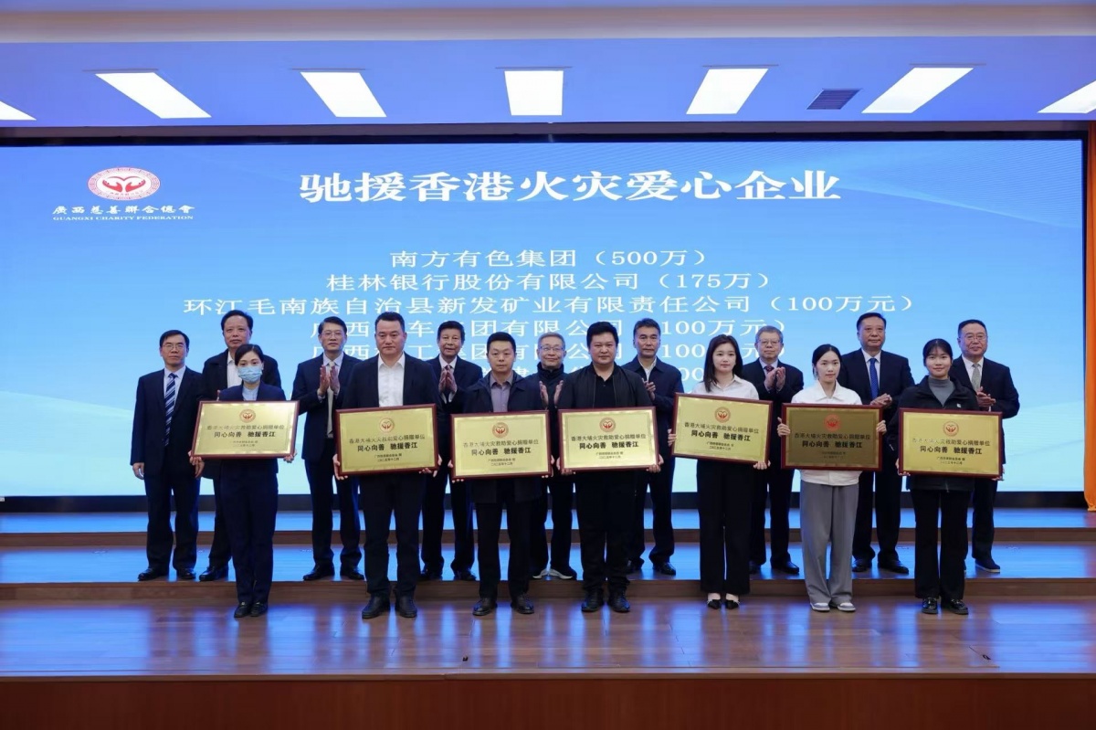 当天现场还举行了表彰仪式,为建会30周年“特别贡献人物”“善行八桂・慈善之星”“善行八桂・好人物”“善行八桂・好企业”等荣誉获得者颁发纪念章、牌匾和证书。同时,为驰援香港火灾的爱心企业授牌,表彰它们在紧急时刻彰显的社会责任与担当。