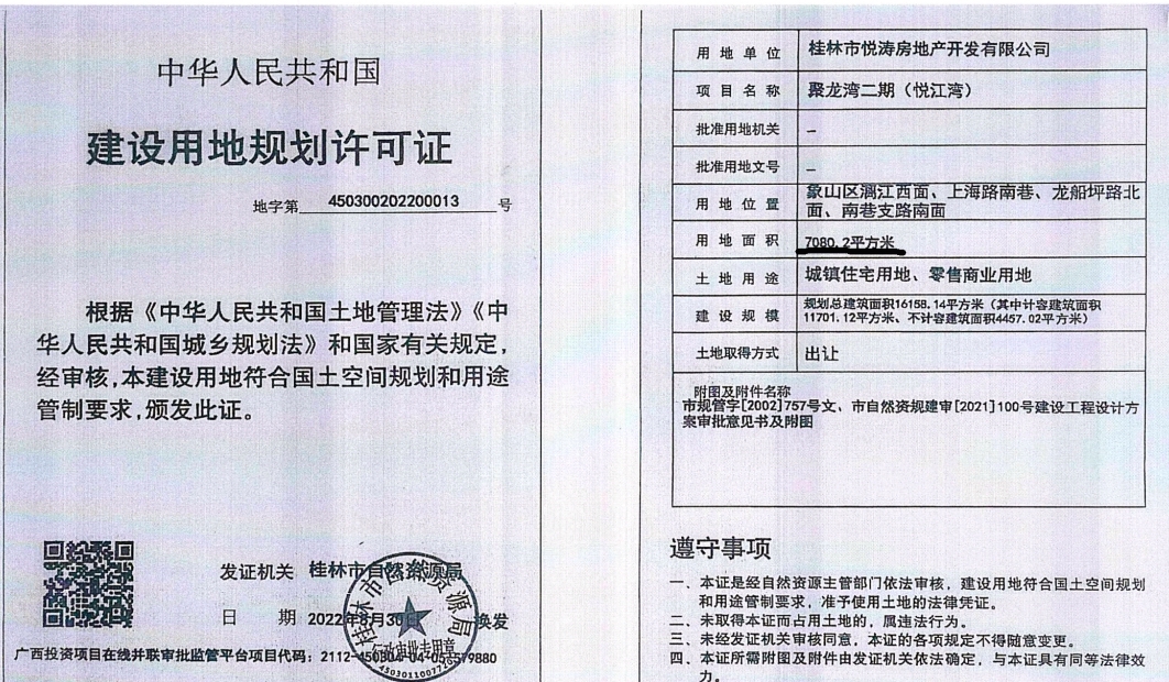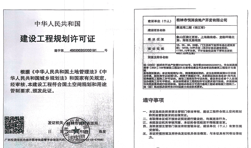 业主还查询获悉,2022年7月,袭汇公司将二期项目以3252万余元的价格转让给桂林市悦涛房地产开发有限公司(以下简称悦涛公司)开发。随后,悦涛公司从桂林市自然资源局取得了建设用地规划许可证和建设工程规划许可证。